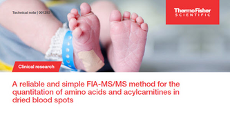 The screening of newborns is a government-sponsored public health program aiming to detect severe inherited genetic disorders. This flow injection analysis-tandem MS (FIA-MS/MS) method quantitates 12 amino acids and 13 acylcarnitines in dried blood spots.