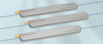 The Thermo Scientific™ μPAC™ Neo HPLC columns’ technology is unique and built by precise micromachining chromatographic separation beds from silicon. This unique approach results in increased reproducibility and sharper peaks due to the ordered flow path of the column which minimizes the separation dispersion plus the moderate pressure requirements allow for longer flow-path giving increased separation performance and sensitivity