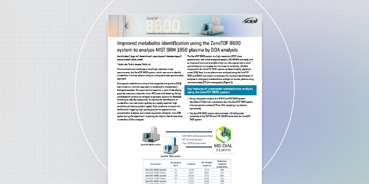 DownloadApplication note: Improved metabolite identification using the ZenoTOF 8600 system to analyze NIST SRM 1950 plasma by DDA analysis