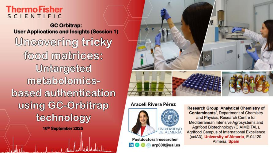 Join Araceli Rivera-Perez a postdoctoral researcher at University of Almeria, Spain for a 20 minute webinar on using the power of GC Orbitrap for untargeted analysis to identify food fraud.