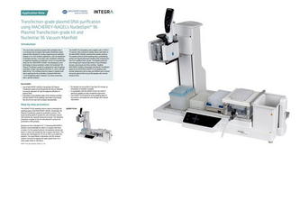 In this application note, you will learn how to combine INTEGRA’s pipetting solutions with MACHEREY-NAGEL’s NucleoSpin 96 Plasmid kit and NucleoVac 96 Manifold to streamline high throughput plasmid DNA purification, delivering consistent yields with reduced manual handling.
