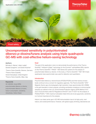 Uncompromised sensitivity in polychlorinated dibenzo-p-dioxins/furans analysis using triple quadrupole GC-MS with cost-effective helium-saving technology