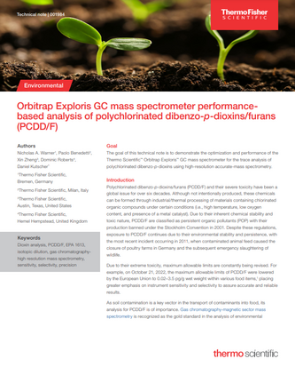 Learn how Orbitrap Exploris GC series can be used for the trace analysis of polychlorinated dibenzo-p-dioxins. Simplified data acquisition, fast instrument set up and increased scope of analysis are just some of the benefits for this challenging application.