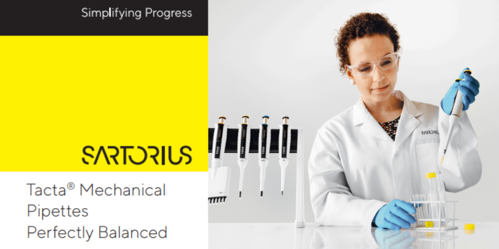 The Tacta® mechanical pipette from Sartorius combines superior ergonomics, precise performance, and user-friendly features. Designed for comfort and long-term accuracy, it includes low pipetting forces, Optilock volume control, and easy cleaning with only three parts. With premium materials and innovative design, Tacta® ensures reliable results and effortless pipetting every time.
