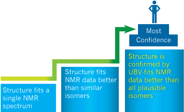 In order to confidently reduce the false positive rate, in the next protocol referred to as Combined and Concurrent Verification (CCV), the advanced algorithms concurrently verify the fit between a specified number of generated isomers with the proposed structure.2 The MF rankings will indicate if any of these alternative structures are more consistent with the NMR data. However, since this protocol matches the experimental data against a selected number of isomers defined by the user or an algorithm, the initial bias from the chemist may still affect the results.