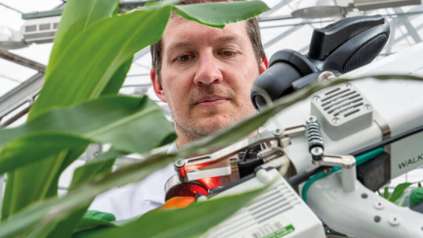 To capture this, the team clamped leaves in an infrared gas analyzer to measure CO₂ uptake, then flash-froze them with liquid nitrogen before analyzing their chemical composition by mass spectrometry. Tracking how isotopically labeled carbon was incorporated into metabolites revealed the central role of photorespiration in producing folates.